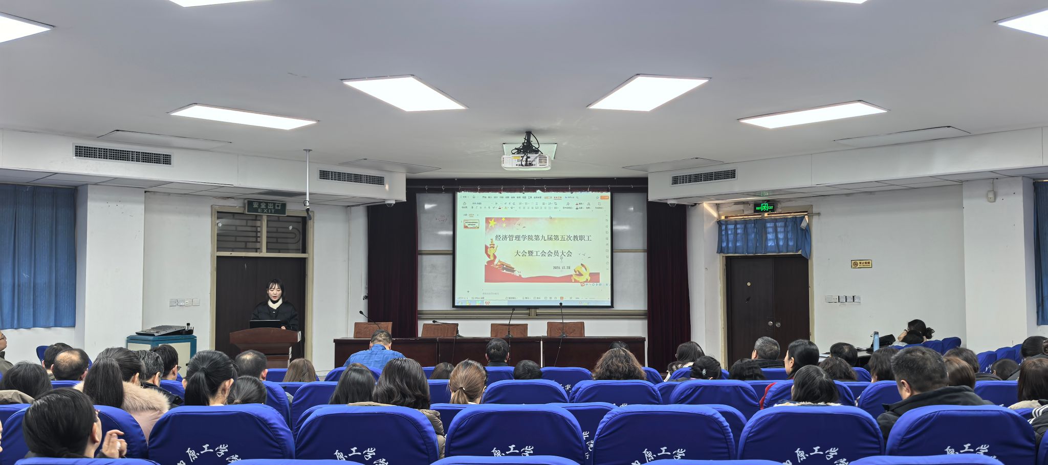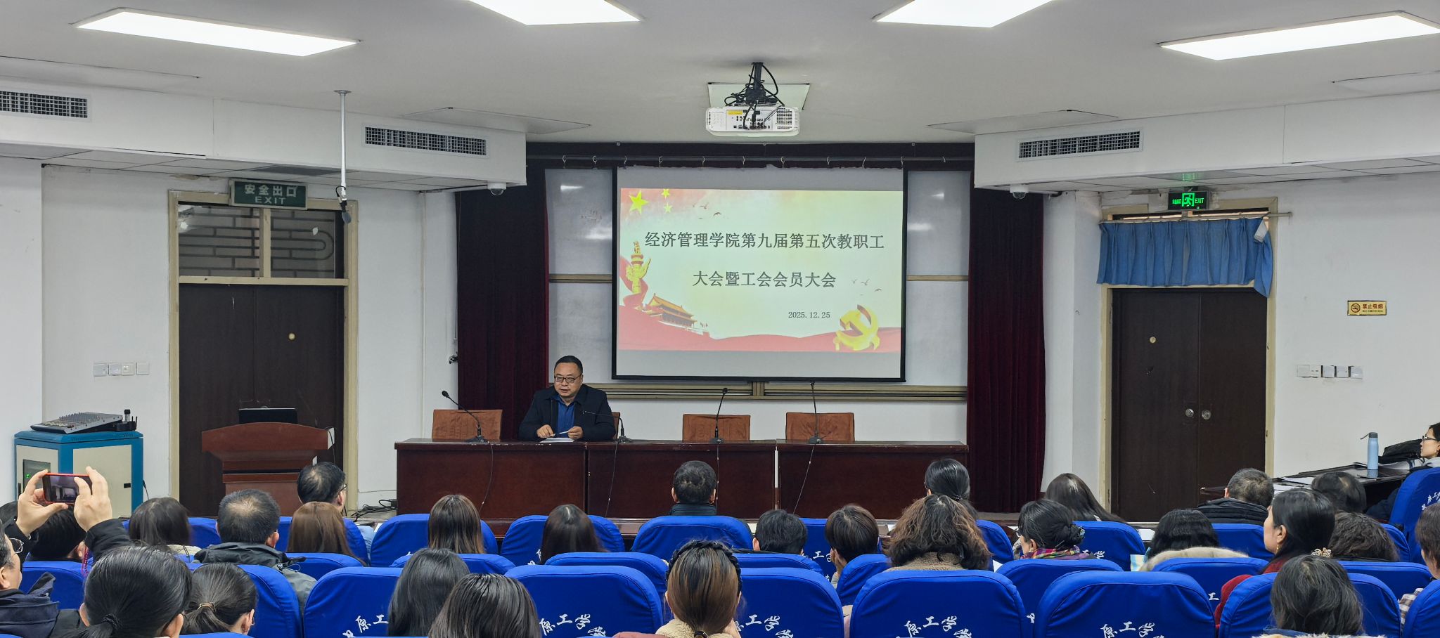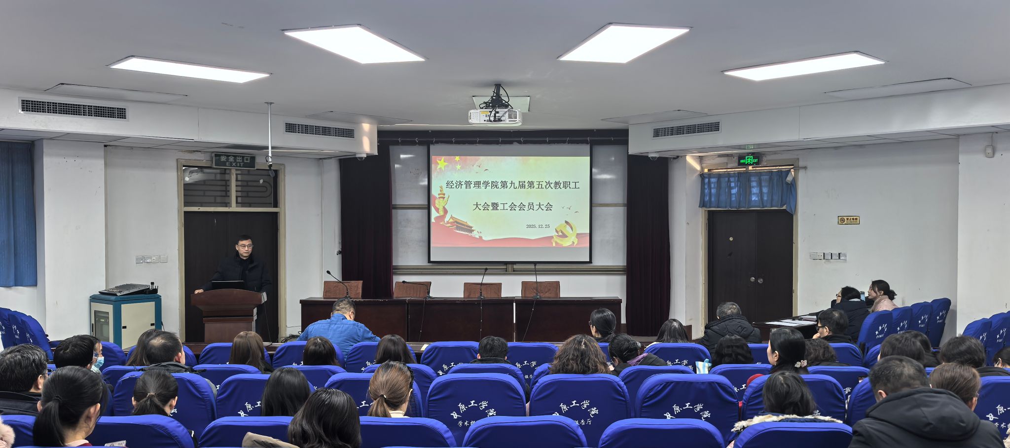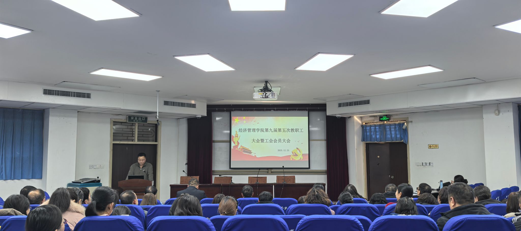 于2025年12月25日下午召开第九届第五次教职工大会暨工会会员大会。学院全体教职工参会,会议由学院分工会主席李君主持。